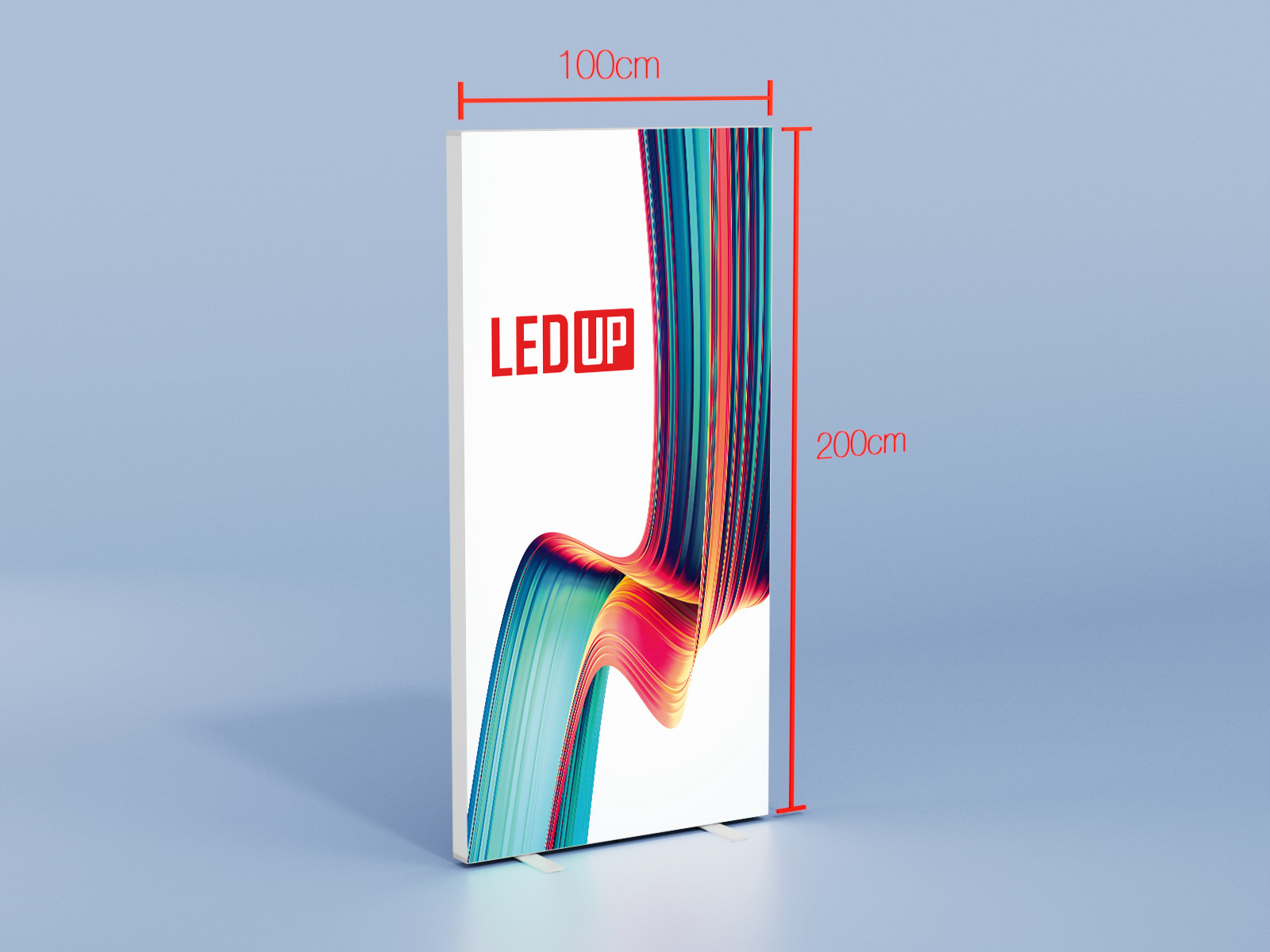Le Totem LEDUP est un totem rétroéclairé textile double-face. Fin, moderne et facile à monter, il met en valeur vos visuels en magasin, sur salon ou en showroom.