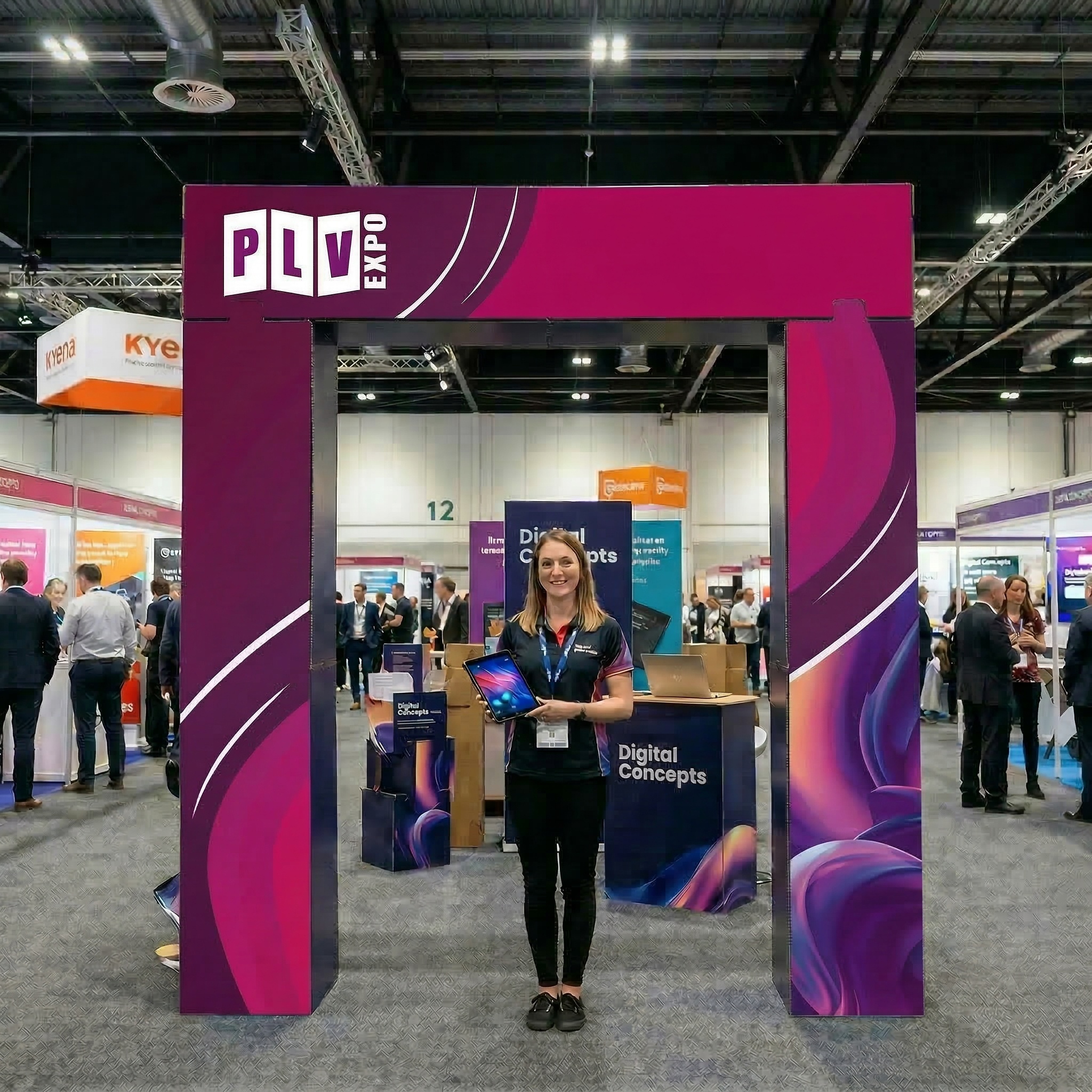 Sur un stand, une arche publicitaire en carton permet de :