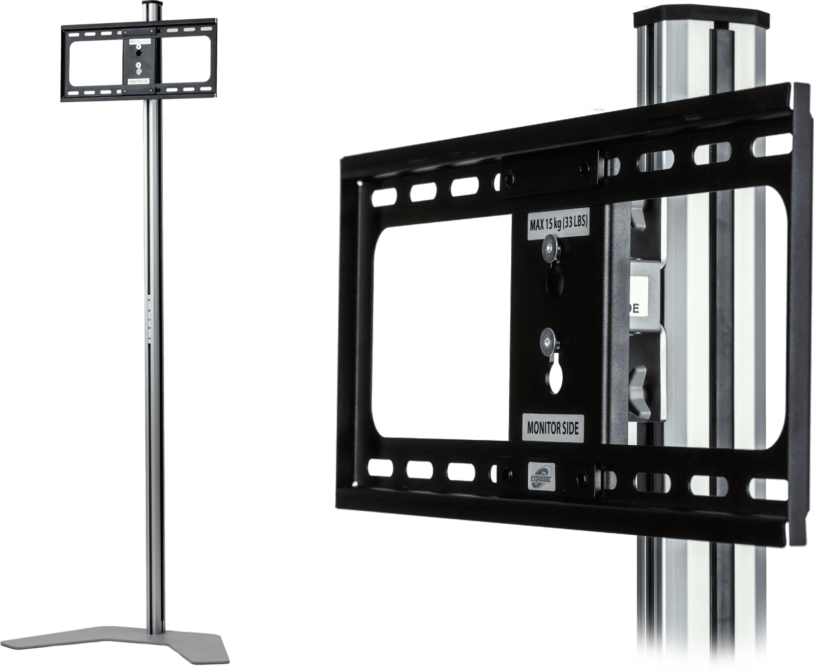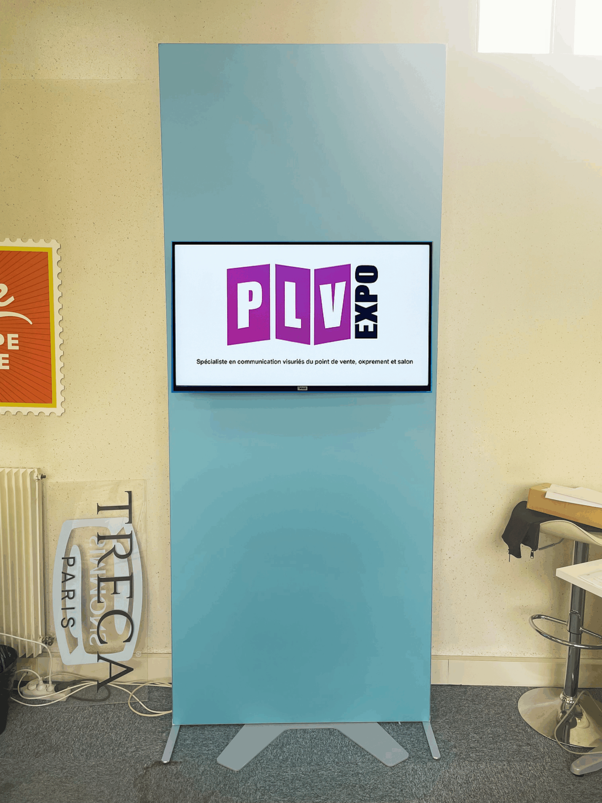 Le porte écran sur pied allie élégance et stabilité pour sublimer vos présentations. Compatible avec les écrans jusqu’à 55’’, il s’intègre parfaitement à vos structures d’exposition pour une communication percutante.