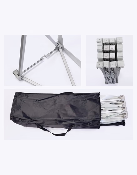 Le Stand J est un stand parapluie avec des visuels fixés avec des joncs sur la structure. Le stand T est une solution originale qui mixe le concept du stand parapluie velcro avec celui du cadre aluminium avec toile tendue. De plus, il se monte rapidement grâce à sa structure "pop-up". Disponible en 4 tailles différentes, le Stand T peut atteindre jusqu'à 2,25m de haut et jusqu'à 3,75m de large.